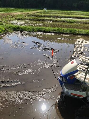 田植え最終日となった今日は、ほとんど依頼されて耕作している1反歩以下の田んぼが点在する場所。山に近く段差があって、とても手間がかかるんです。特にこの5畝は、これまで何度も身動きとれなくなって複数の人に引っ張り上げてもらった経緯があります。…